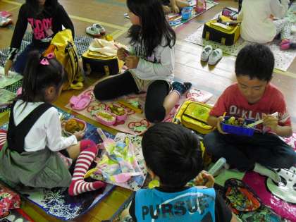ですが,せっかくのお弁当!ということで,一年生と一緒にレジャーシートを広げ,昼食をとりました。