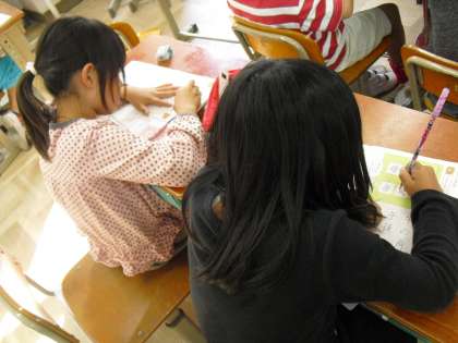 良い姿勢・鉛筆のもちかたを確認し,漢字の「はね」「はらい」に気を付けて