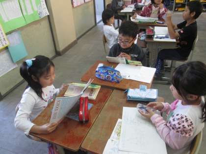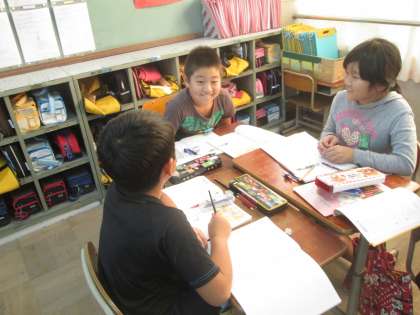 グループで考えを説明し合い,みんなで答えを導くことができました。