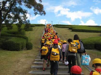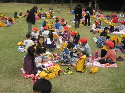 11月5日(水)遠足に行ってきました。行き先は太陽が丘です。少し肌寒かったですが,お天気にも恵まれ,お休みする人もなく全員参加できました。午前中は,ワンツーグループで,ラリーをしました。おいしいお弁当の後は,遊具で楽しく遊びました。1年生だけでなく,2年生も一緒に活動しました。2年生が,やさしくリードしてくれ,みんなにこにこ楽しく活動できました。