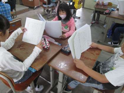 それぞれが書いた感想文を読み合い,友達の感想文のよさをみつけました。