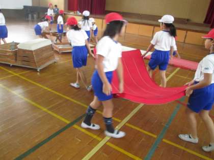 とび箱運動では,用具の準備や片付けも大事な学習です。