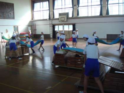 体育館での体育科の学習は「とび箱運動」をしています。3年生までの学習を思い出しながらスムーズに準備をすることができました。
