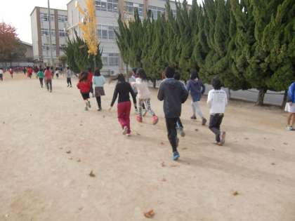 持久走大会に向けて,中間休みに5分間走に取り組んでいます。