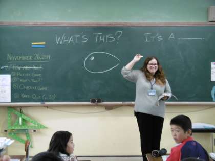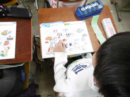 先生がかいた絵が何かをあてるクイズやおはじきゲームなど楽しんで取り組みました。