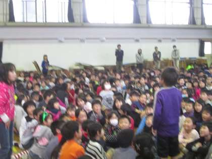 また,転校生の紹介や,5年生の環境授業をテーマにした発表がありました。