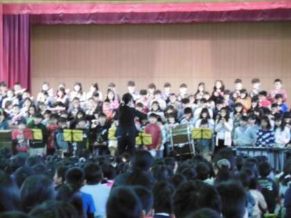 その後,替え歌で楽しくエコの取り組みを呼びかけました。