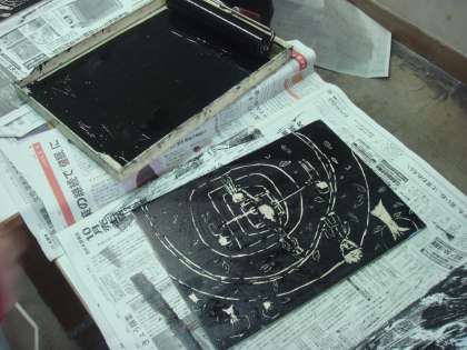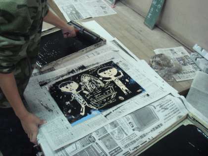 図画工作科の版画の学習では,刷りの活動に入りました。むらができないようにていねいに刷っていきます。