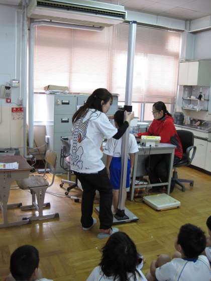 1年生は,4月当初に比べ,とても上手に身体計測を受けることができるようになりました。