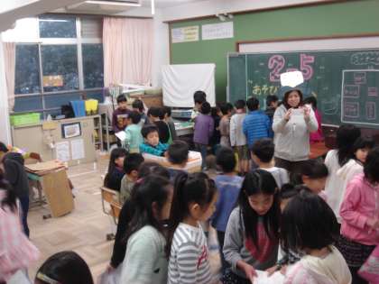 1・2時間目のせいかつで,あそびランドをしました。2年生が準備してくれたゲームを行い,成功すれば景品がもらえます。1年生は,2年生の言うことをしっかりと守り,とっても楽しそうにゲームに取り組んでいました。「先生,こんなにたくさん景品をもらったよ!」と自慢してくれました。1年生も夢中に取り組んだみたいで「遊びすぎて疲れた。」と言っていました。