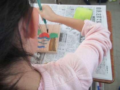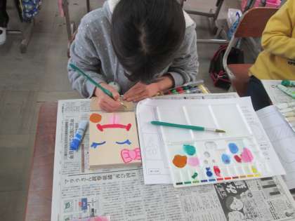 図画工作の学習で,小物入れを作っています。