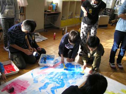 小さな巨匠展に展示する合同作品を作るために、久我の杜小学校に行ってきました。