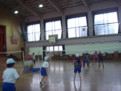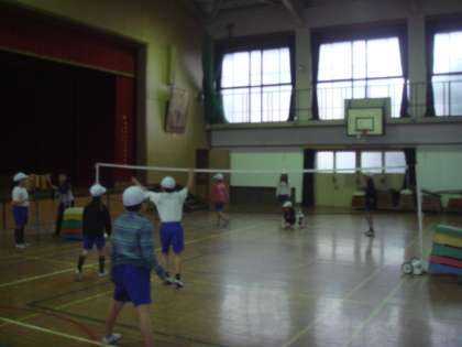 体育館での体育科の学習は「ソフトバレーボール」です。まだ始まったばかりで,なかなかボールを思うようにコントロールできないようです。ルールやゲームの進め方に慣れながら,いろいろなチームに挑戦して楽しみながら進めていきます。