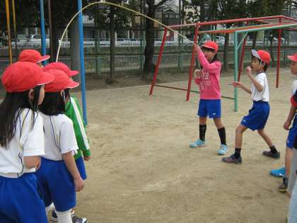 大なわの練習をしています。