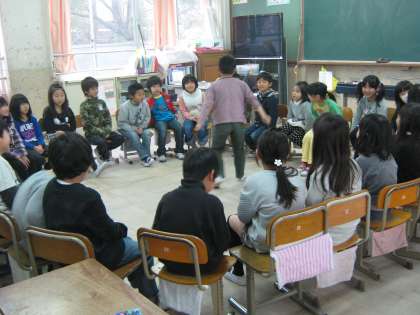 雨で運動場が使えない日は,教室でできる遊びを考えます。