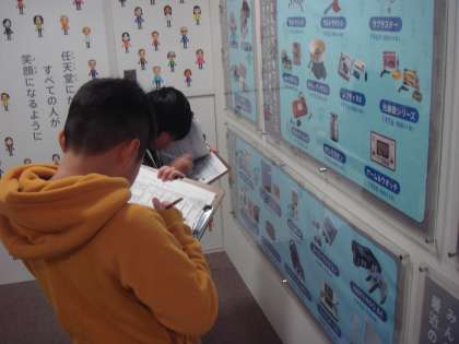 4年生は今年度最後となる校外学習に行きました。まず午前に京都まなびの街生き方探究館に行きました。「京都モノづくりの殿堂」では企業のブースで調べ学習をしました。パネルやビデオで調べたり,モノレンジャーさんに聞いたりしました。