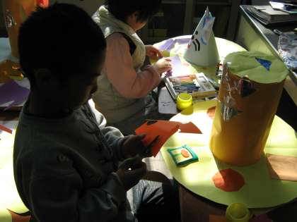 折り紙を切って貼るだけでなく,立体的なものになるように工夫しています。