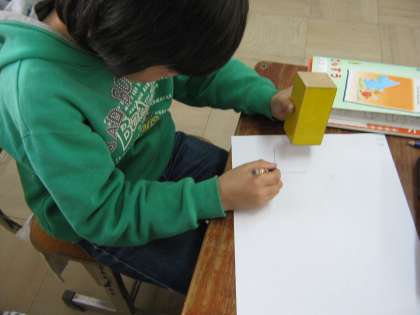 今回はお家から持ってきた箱や学校の積み木の形を紙に写し取り,はこの形を調べました。箱には面の数が6つあること・面は長方形や正方形でできていることなどを発見することができました!