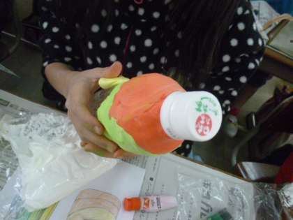 粘土のつけ方,粘土の色の組み合わせ方を考えて,生活の中で使うものを作りました。