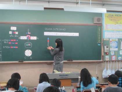 「じしゃくのふしぎをしらべよう」の学習で,磁石についた鉄釘は,磁石になっていることを調べました。