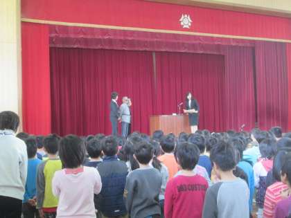 また,1年間登下校でお世話になった,「子ども安全見守り隊」の方々に感謝の気持ちを伝えたり,1年生がお世話になった「まなびの先生」とのお別れをしたりと,1年間の終わりにふさわしい式になりました。