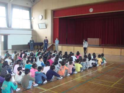 3校時に体育館で学年集会をしました。先生の自己紹介,学年目標の発表,学年のルールの確認をしました。子どもたちの顔は真剣で,「これからがんばるぞ」という気持ちが表れていました。最後にみんなでゲームをして楽しみました。