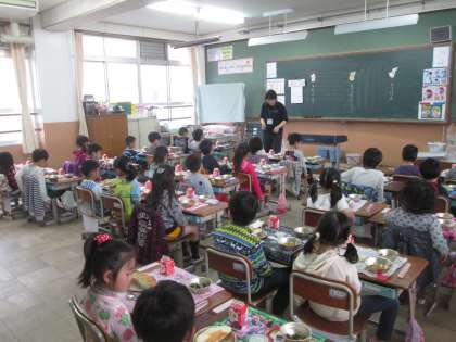 給食のきまりをみんなで確認してから,「いただきます。」をしました♪
