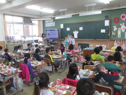 食べた後は,6年生にお手伝いしてもらいながら,しっかりお片付けができました。