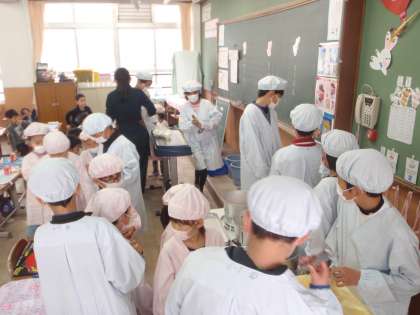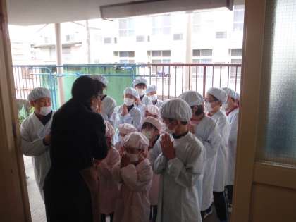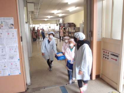 給食の運び方や配り方など,やさしいお兄さん・お姉さんとして頑張っています。