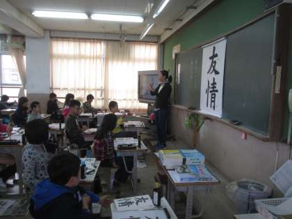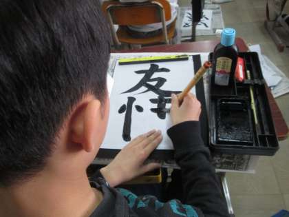文字の組み立て方と点画のつながりを考えて,「友情」を書きました。