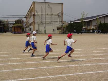 4月16日,50m走のタイムを計測しました。子どもたちはみんな力いっぱい走っていました。