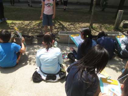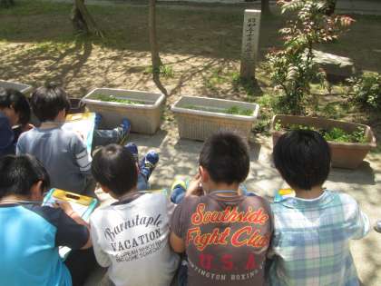 校庭の身近な動物や植物の様子を観察しました。