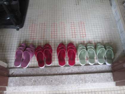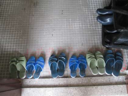 低学年生の教室もしっかりスリッパが並べられていました。