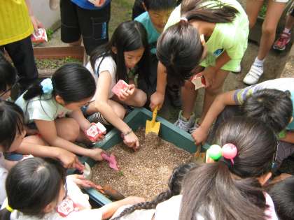 ツルレイシの種を牛乳パックの植木鉢に植えました。