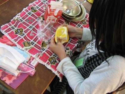 みんな一生懸命むいて食べていました。