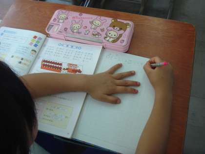 算数科の授業では「わり算」の学習をしています。2年生で習った九九を使って考えます。スムーズに答えを見つけられるように練習を繰り返していきます。
