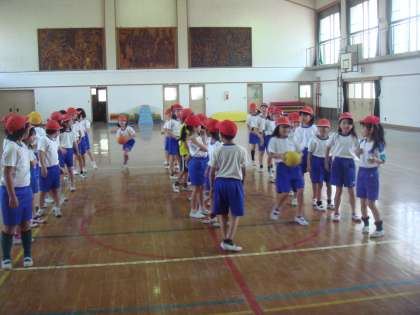 体育館での体育科の授業では「体ほぐしの運動」をしています。いろいろなゲームを取り入れて,楽しみながら活動しています。