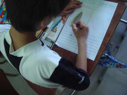 3年生ではヒマワリとホウセンカを育てていきます。今日はたねのかんさつをしました。色や形,大きさ,さわった感じなどをかんさつカードに書きました。植えて育てていくのが楽しみです。