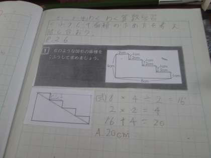 面積の求め方を色々工夫して考えて,友だちと交流しました。