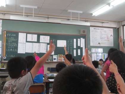 児童が主体的に学習を進められるよう,グループや全体で司会を立てて活動していきます。