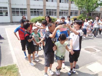 1年生をむかえる会がありました!6年生は,1年生のお友だちへ名前入りのカブトをプレゼント。カブトをかぶせてあげ,手をつないで一緒に入場しました!