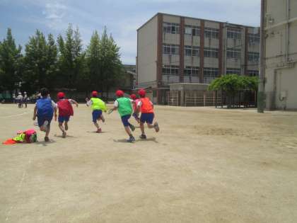 リングのバトンを使って,渡し方に気を付けながらリレー遊びを楽しんでいます♪