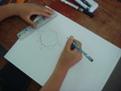 算数の学習は「円と球」に入りました。今日は,工作用紙でこまを作りました。いろいろな形のこまを作って回してみました。どんな形でも回すと丸い形に見えることに気付くことができました。これから,丸い形についていろいろと学習していきます。