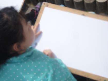 図画工作では,校舎の絵と花の絵を描きます。今日は,職員室前に咲いている花を自分で選んでかきました。
