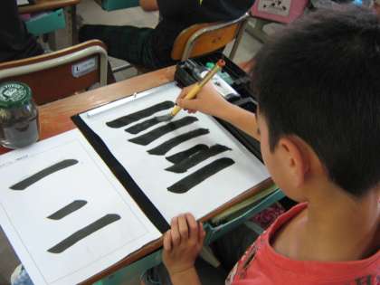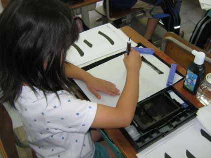初めてで少し難しさもあったようですが,お手本を見て何度も練習し,真剣に書くことができました。