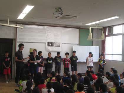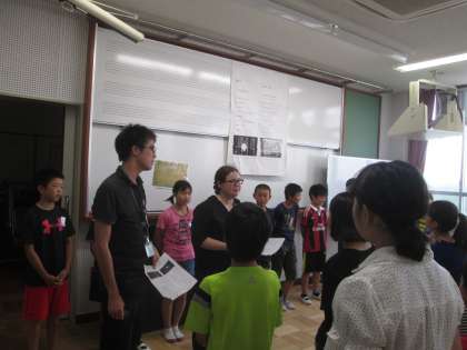 パトリック先生に,平和の詩(英語版)の発音を教えてもらい,気持ちを込めて練習しました。