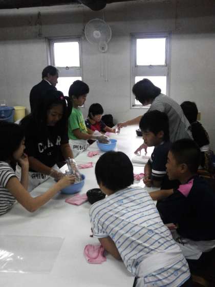 音楽に乗って、楽しくうどん作りに取り組みました。