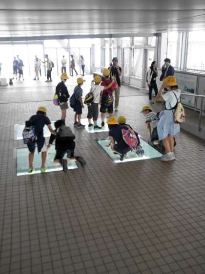 450mほど海の上の遊歩道を歩き,ガラスごしに下をのぞくことができました。