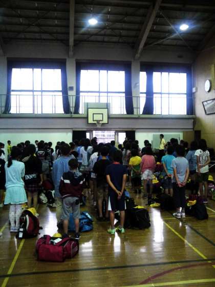 午後5時45分頃,羽束師小学校へ帰ってきました。平和学習や,様々な活動でめあてをもって学習でき,最高学年としての責任ある行動ができた修学旅行になったと思います。