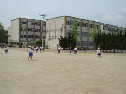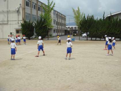 体育科の授業でハンドベースボールをしています。ルールにも慣れてきて楽しみながら学習しています。